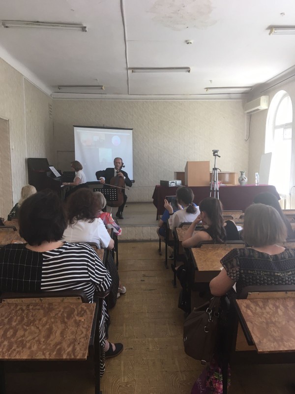 В его исполнении впервые в Волгограде прозвучали Три пьесы и Элегия для виолончели и фортепиано талантливого, но практически забытого сегодня композитора Сергея Борткевича, интерес к творчеству которого сегодня активно возрождается. Партию фортепиано исполнила пианистка Л.Б. Сказкина.