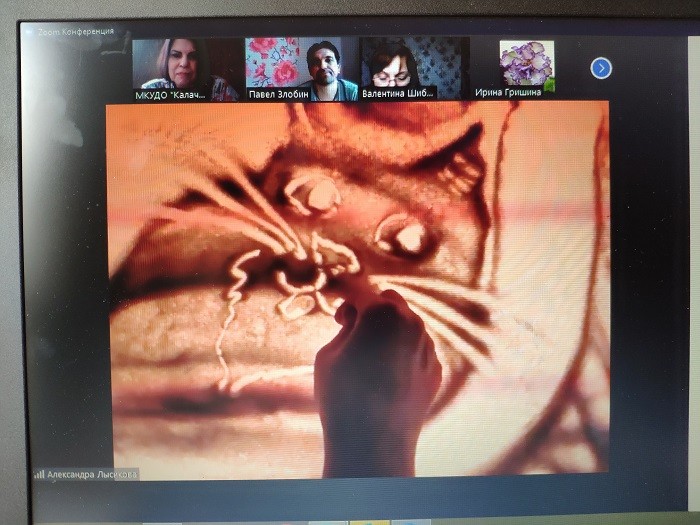В этот же день на платформе Zoom была проведена видеоконференция с преподавателями – участниками РМО по направлению «Изобразительное и декоративно-прикладное искусство». Преподаватель ДШИ г. Николаевска Мочалова Елена Николаевна провела мастер-класс на тему «Вышивка лентами по дереву с резьбой как один из вариантов нового направления ДПИ («Firm-soft»)». Преподаватель изобразительного искусства ДШИ «Воскресение» г. Волгограда Лысикова А.В. продемонстрирована презентацию на тему «Жостовская роспись». Кроме того, Александра Васильевна выступила с интересным мастер-классом на тему «Рисование песком». Преподаватель ДШИ №3 г. Волгограда Гришина Ирина Владимировна подготовила доклад с презентацией на тему «Орнамент». Заведующий учебной частью и художественного отделения филиала ГОБУК ВО «ВГИИК» в г. Камышин Балина Татьяна Геннадьевна поделилась опытом участия студента филиала ГОБУК ВО «ВГИИК» в г. Камышин во Всероссийской креативной школе-фестивале творческих компетенций Академии им. Строганова».