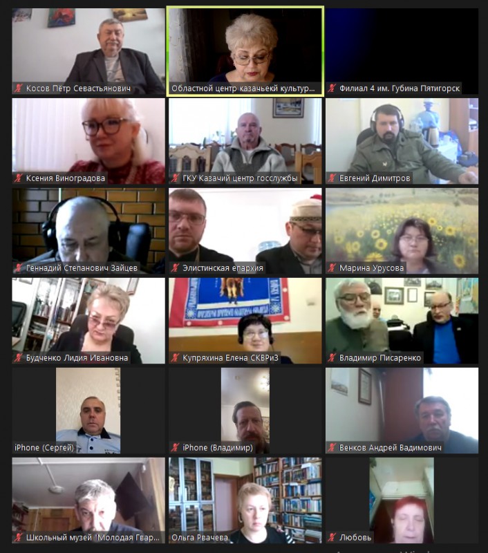 В работе круглого стола, целью которого является сохранение исторической памяти, противодействие фальсификации страниц истории России, связанных с российским казачеством, приняли участие более пятидесяти представителей духовенства, науки, культуры, образования, центров казачьей культуры, казачьих общественных объединений различной формы собственности Российской федерации из разных уголков России. Открыл мероприятие фильм «Мы Помним» автора Ноликова Михаила Львовича краеведа, писателя лауреата 1 степени I Всероссийского конкурса «Лучшее краеведческое издание по истории и культуре российского казачества».
