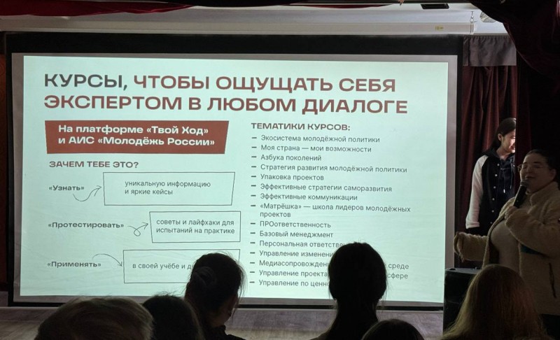 В Волгоградском государственном институте искусств и культуры состоялась встреча студентов с представителем Всероссийского проекта «Твой ход». «Твой ход» - это масштабное сообщество студентов, которые хотят актуализироваться через создание и воплощение в жизнь разнообразных молодежных проектов, и тем самым оказывать позитивное влияние как на опыт других студентов в рамках обучения в вузе, так и на процессы, протекающие внутри учебного заведения.