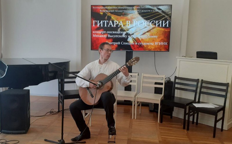 В Волгоградской областной универсальной библиотеке имени Максима Горького с большим успехом и при полностью заполненном зале прошёл концерт "Гитара в России", посвященный гитарным сподвижникам 19-20 вв. и обработкам русских народных песен для гитары. На концерте были представлены вариации и фантазии на русские лирические, застольные, плясовые песни, а также музыка для гитарных ансамблей, сочинённая и переложенная отечественными композиторами-гитаристами.