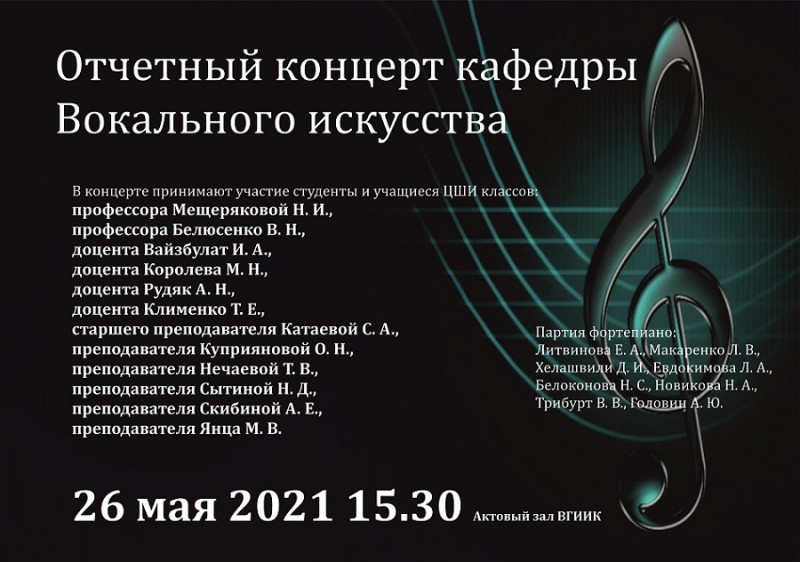 Отчетный концерт кафедры вокального искусства ВГИИКа