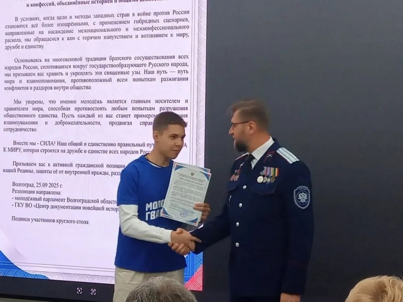 Итогом мероприятия стало подписание участниками резолюции по результатам круглого стола «Дорога к миру», обращённая через представителей молодёжного парламента Волгоградской области к молодёжи.