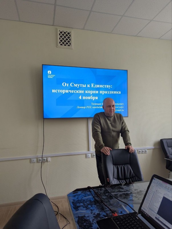 Патриотический клуб ВГИИК «Рубеж» совместно с организацией ветеранов контрразведки ФСБ РФ «Веткон» организовал встречу студентов с Василием Валерьевичем Телицыным, кандидатом исторических наук, лектором Российского общества «Знание». Тема встречи: «Сквозь Смуту к Единству: исторические корни Дня народного единства».