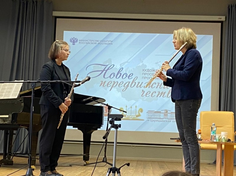 30 сентября с Ольгой Юрьевной работали: ученица ДШИ №2, г.Волгоград Марина Прохорова, студентка колледжа ВГИИК Полина Мещерякова и студентка колледжа ВГИИК Софья Телякова. По завершении мастер-классов в исполнении Ольги Юрьевны Ивушейковой прозвучала Партита соль мажор для флейты соло Иоганна Себастьяна Баха.